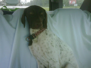 Maggie is the puppy we chose to keep, and is our first inside hunting dog. She is also the only dog from the first litter that is a hunter, and boy what a hunter she is. She loves to go hunting and does nothing buy whine and cry when it's not her turn to be out of the dog box. Look for some action shots of Maggie coming soon. Until then, here's some photos of her being an excellent pet.